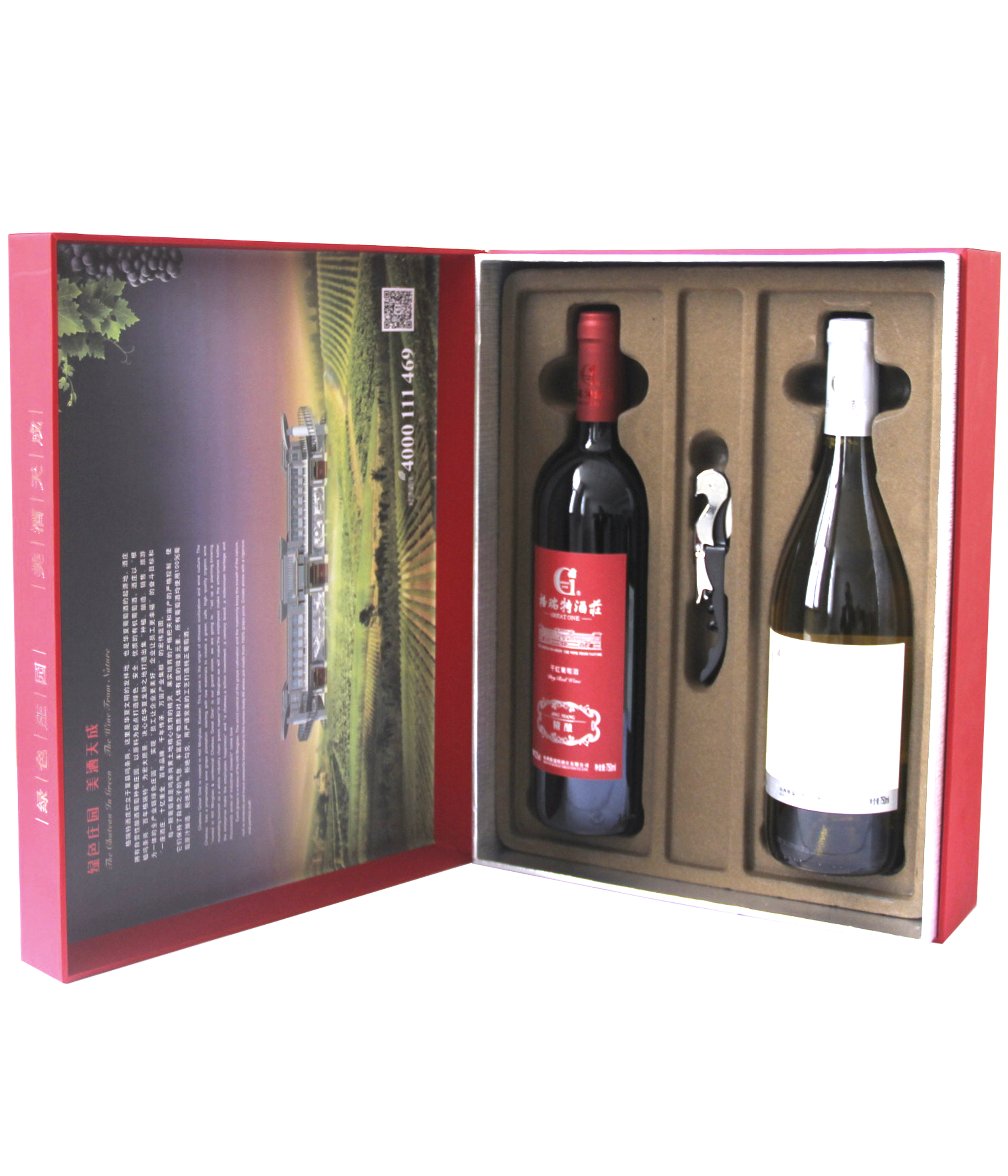 親情禮盒內(nèi)含精釀干紅和珍釀干白各一瓶,一盒可以品鑒到兩款不同風(fēng)格的葡萄酒。價(jià)格親民,是親朋好友之間的饋贈(zèng)佳品。禮盒采用喜慶的紅色設(shè)計(jì),帶給人濃濃的暖意。是私人饋贈(zèng)和葡萄商務(wù)饋贈(zèng)的佳品。