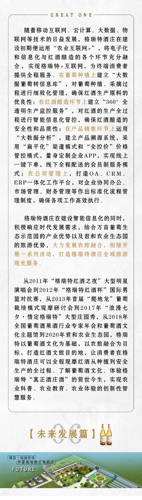 山西格瑞特酒莊有限公司成立于上世紀80年代,是一家集釀酒葡萄種植,釀酒生產,農業(yè)產業(yè)化,工業(yè)旅游化為一體