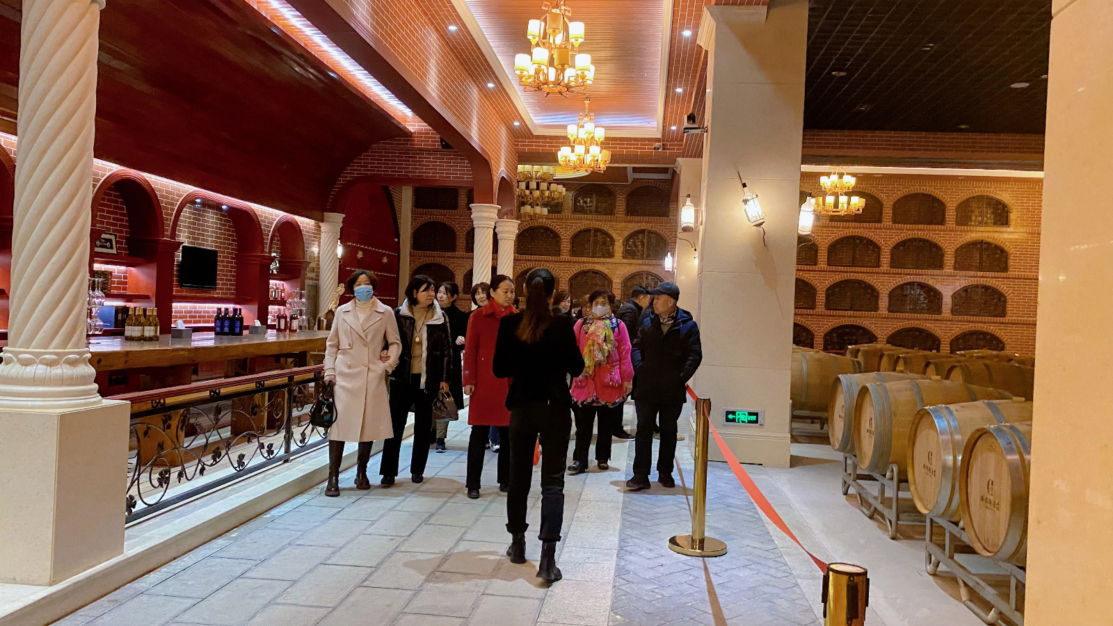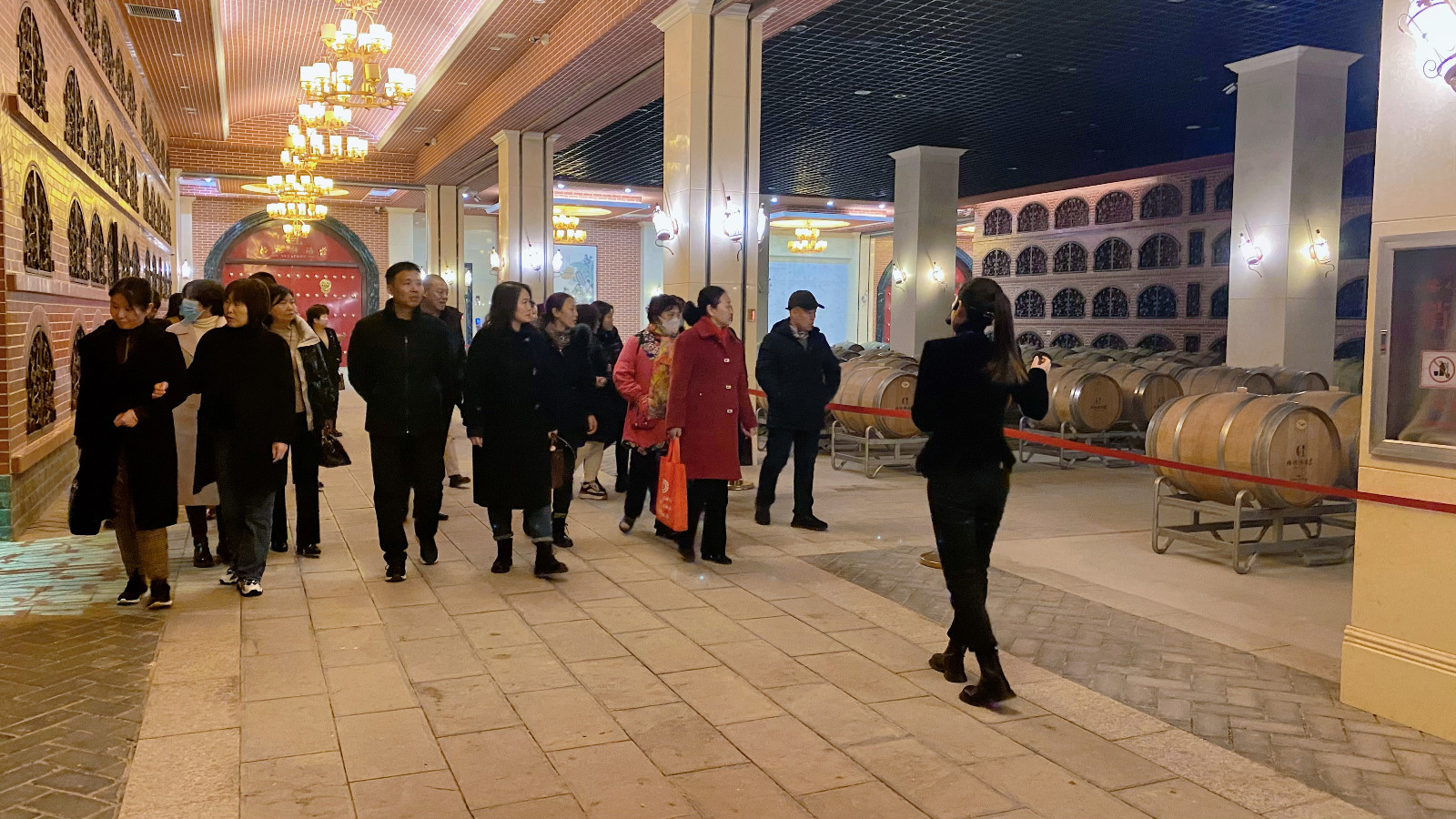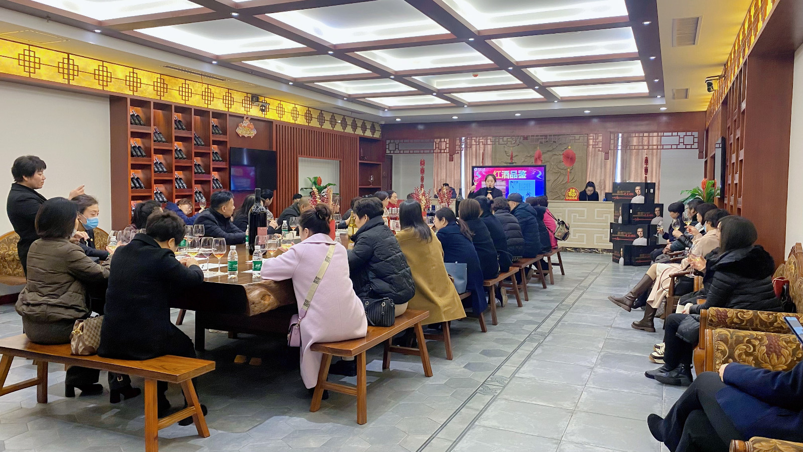 參觀完地下酒窖,進(jìn)入中式品鑒室。品味紅酒,是一種享受,持杯、觀色、聞香、品嘗都有一系列嚴(yán)謹(jǐn)?shù)囊?guī)則,在專業(yè)品鑒師的講解下,更深入地去品味紅酒。