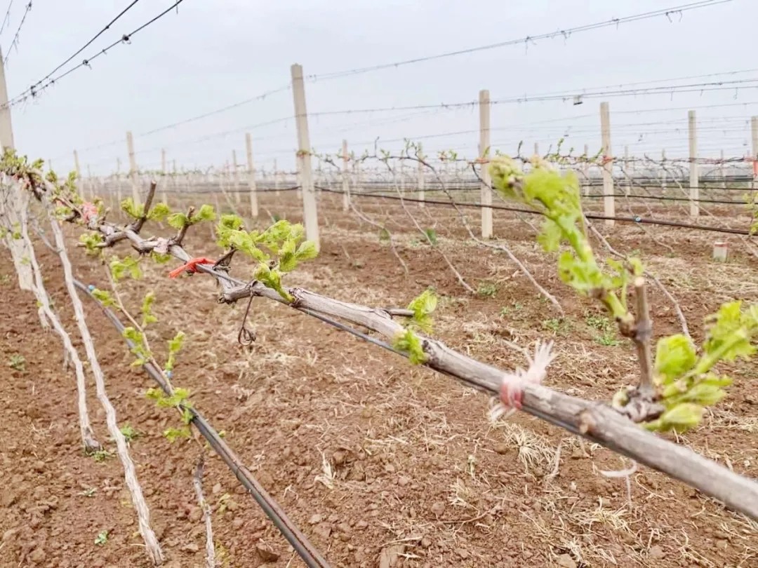 優(yōu)質(zhì)的葡萄原料來源于卓越的葡萄園,是釀造佳釀的基礎(chǔ),而作為原料提供者的葡萄藤每年都在不斷進(jìn)行生命周期的輪轉(zhuǎn)。前段時間,葡萄園的工作人員還在進(jìn)行剪枝、上架等工作,為葡萄藤在春天的快速生長做好準(zhǔn)備工作。時至清明,春風(fēng)和煦,草木青青,天氣清徹明朗,葡萄藤已經(jīng)發(fā)芽了,格瑞特莊園迎來了新的生長季。