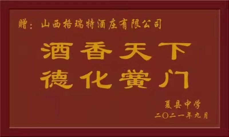 最后,山西格瑞特酒莊全體人員衷心的感謝夏縣中學(xué)為企業(yè)贈(zèng)送的“酒香天下,德化黌門”牌匾。祝愿夏中越辦越好,今后能為地方乃至全國培養(yǎng)出更多德才兼?zhèn)涞娜瞬拧?/span>